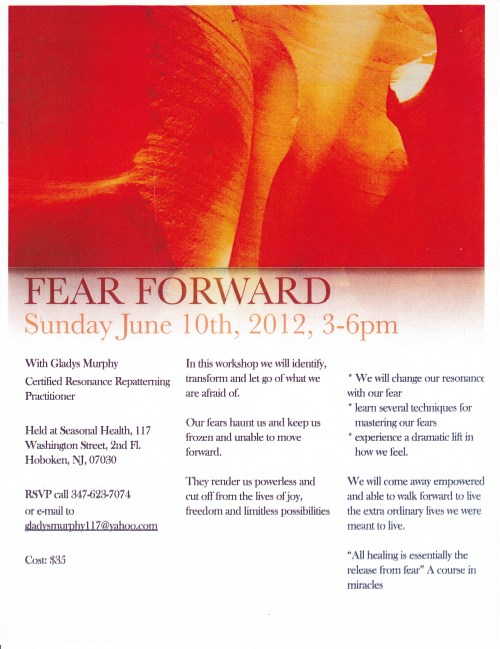 I’m happy to let you know that Group Member Gladys Murphy is leading a workshop entitled Fear Forward on Sunday, June 10, 2012 from 3-6pm in Hoboken, New Jersey.